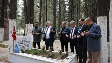 Edremit Belediye Başkanı Mehmet Ertaş, belediye başkan yardımcıları ve meclis üyeleri ile birlikte Edremit Şehitliği'ni ziyaret etti.