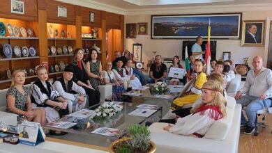 International Folk Dance Organization (IFDO) kurucuları Salih Önsoy ve Murat Erdem, dansçılarla beraber Kemer Belediye Başkanı Necati Topaloğlu’nu ziyaret etti.